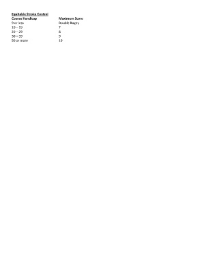 Equitable Stroke Control Course Handicap Maximum Score 9 or less Double Bogey 10 – 19 7 20 – 29 8 30 – 39 9 50 or more 10