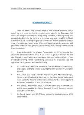 • Mr. Rakesh Kumar, Joint DG, TPD and his team for detailed inputs on WTO