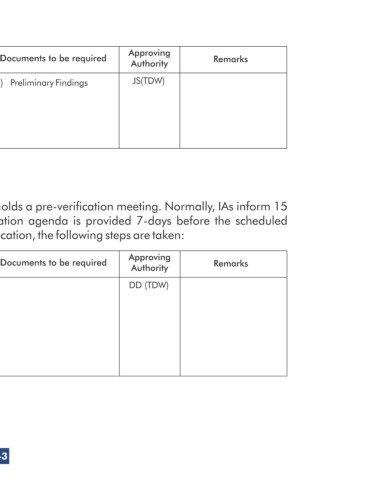 6. As per the schedule provided by the IAs, the TDW holds a pre-verication meeting. Normally, IAs inform 15