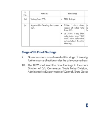 9. No submissions are allowed at this stage of Investigation. TPD analyses the Final Findings and takes a call on