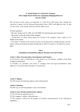 II. Model Statute of a Joint Stock Company