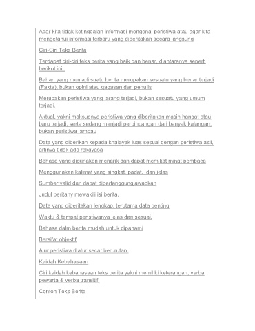 Terdapat ciri-ciri teks berita yang baik dan benar, diantaranya seperti