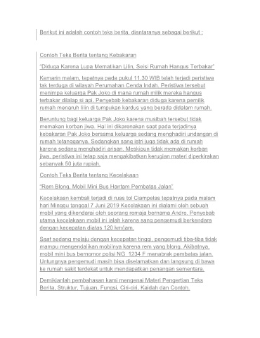 Berikut ini adalah contoh teks berita, diantaranya sebagai berikut :