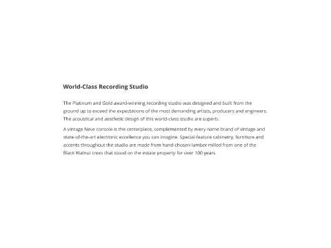 The Platinum and Gold award-winning recording studio was designed and built from the