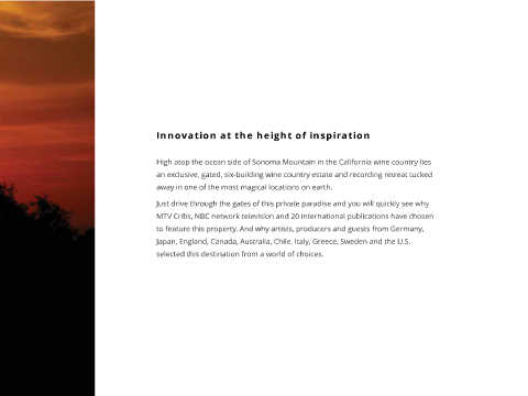 an exclusive, gated, six-building wine country estate and recording retreat tucked