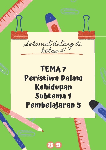 Selamat datang di kelas 5! TEMA 7 Peristiwa Dalam Kehidupan Subtema 1 Pembelajaran 5