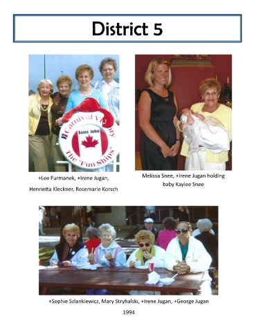 District 5 +Lee Furmanek, +Irene Jugan, Melissa Snee, +Irene Jugan holding baby Kaylee Snee Henrietta Kleckner, Rosemarie Korsch +Sophie Szlankiewicz, Mary Stryhalski, +Irene Jugan, +George Jugan 1994