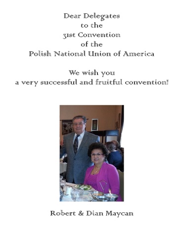 Dear Delegates to the 31st Convention of the Polish National Union of America We wish you a very successful and fruitful convention! Robert & Dian Maycan