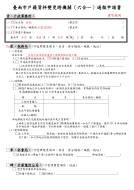 臺南市戶籍資料變更跨機關(六合一)通報申請書