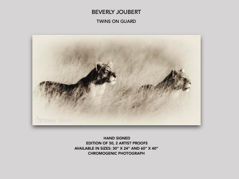 BEVERLY JOUBERT TWINS ON GUARD HAND SIGNED EDITION OF 50, 2 ARTIST PROOFS AVAILABLE IN SIZES: 30” X 24” AND 60” X 40” CHROMOGENIC PHOTOGRAPH
