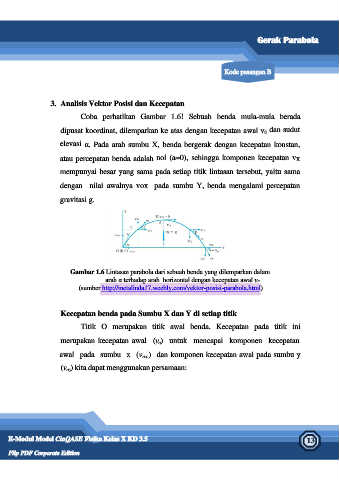 Gambar 1.6 Lintasan parabola dari sebuah benda yang dilemparkan dalam