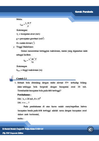 Dalam menentukan ketinggian maksimum, rumus yang digunakan ialah