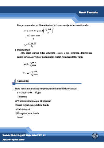 Jika persamaan t xm ini disubstitusikan ke komponen jarak horizontal, maka: