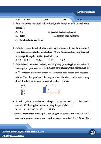 9. Sebuah peluru ditembakkan dengan kecepatan 60 m/s dan sudut