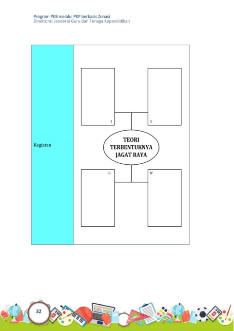 Program PKB melalui PKP berbasis Zonasi Direktorat Jenderal Guru dan Tenaga Kependidikan I II TEORI Kegiatan TERBENTUKNYA JAGAT RAYA III IV 32