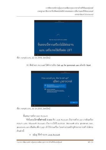 ซึ่งขั้นตอนนี้การตั้งค่าจะมี 2 แบบ คือ Local Account เป็นการสร้าง user ภายในเครื่อง