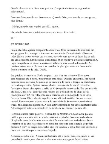 mortal. Retomou para o que restara do escritório de Strathmore, sentindo-se