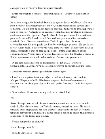 saindo de foco. Observava os olhos de Tankado: pareciam cheios de