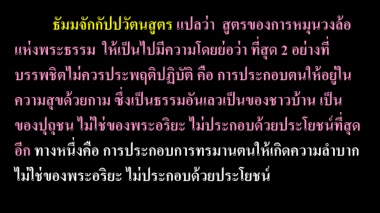 ธัมมจักกัปปวัตนสูตร แปลว่า สูตรของการหมุนวงล้อ