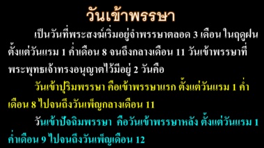 เป็นวันที่พระสงฆ์เริ่มอยู่จ าพรรษาตลอด 3 เดือน ในฤดูฝน