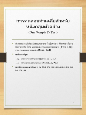 • เป็นการทดสอบว่าค่าเฉลี่ยของประชากรหรือกลุ่มตัวอย่าง ทีค่าแตกต่างไปจาก