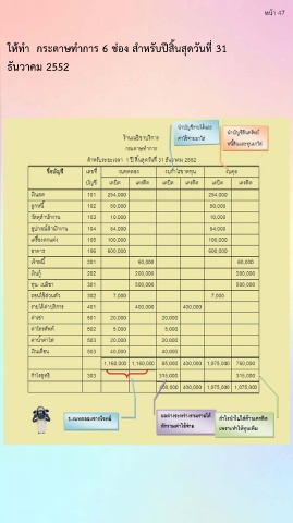 หนา 47 ใหทํา กระดาษทําการ 6 ชอง สําหรับปสิ้นสุดวันที่ 31 ธันวาคม 2552