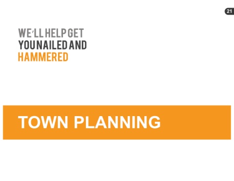 21 We’ll Help Get You Nailed and Hammered TOWN PLANNING