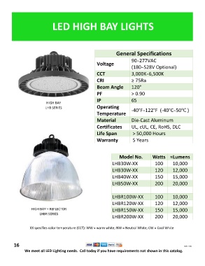 HIGH BAY – REFLECTOR                            LHBR150W-XX               150       15,000