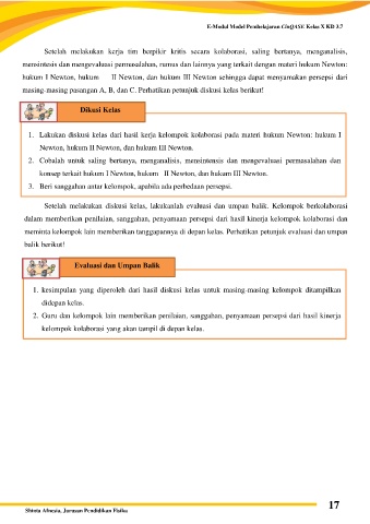 mensintesis dan mengevaluasi permasalahan, rumus dan lainnya yang terkait dengan materi hukum Newton: