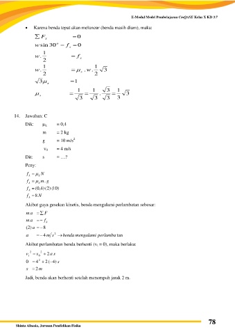 Karena benda tepat akan meluncur (benda masih diam), maka: