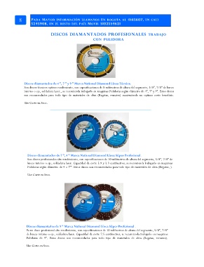 Discos diamantados de 4 ”, 7 ” y 9 ” Marca National Diamond Línea Técnica.