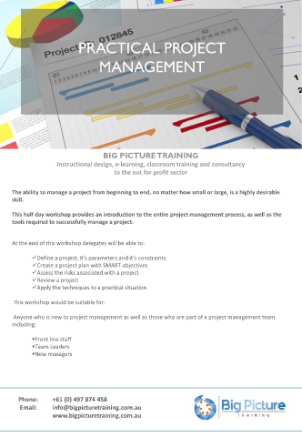 This half day workshop provides an introduction to the entire project management process, as well as the