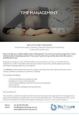 This workshop is suitable for people at all levels who want to improve their approach to time management, as