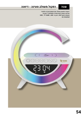 70₪רמקול משולב טעינה -דיאנה רמקול בלוטוס משולב עם משטח טעינה אלחוטי בעיצוב האות Gעם תאורה מתחלפת 7מצבים עוצמת רמקול ,5Wניגון מUSB , TF CARD , AUX - 24x23x8סמ 54