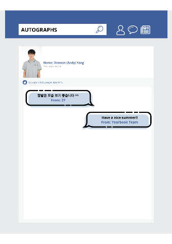 AUTOGRAPHS Name: Dowoon (Andy) Yang Yearbook owner You and 3,835 people liked this. 활발한 모습 보기 좋습니다 ^^ From: 27 Have a nice summer!! From: Yearbook Team