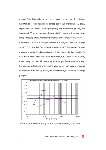 menurun sampai 0,8 pada energi 1300 keV. Surveimeter Sintilasi memiliki Fk