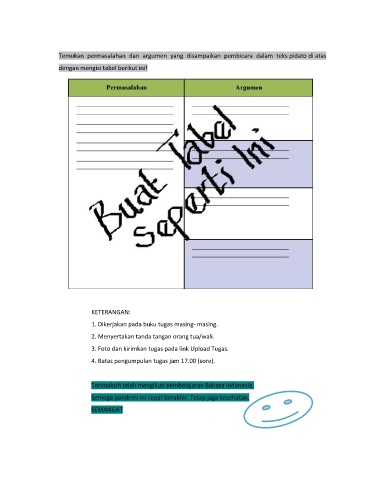 Temukan permasalahan dan argumen yang disampaikan pembicara dalam teks pidato di atas
