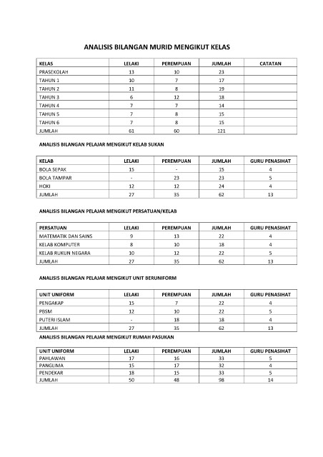 ANALISIS BILANGAN MURID MENGIKUT KELAS