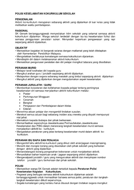 POLISI KESELAMATAN KOKURIKULUM SEKOLAH