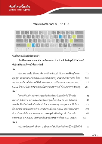 การพิมพ์แป้นเครื่องหมาย % , - ฯ “ ( ) . ?