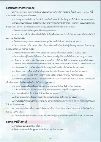 ๑๙. งานวนั ธรรมศาสตร์ ใหบ้ รกิ ารวชิ าการแกส่ งั คม โดยจดั การบรรยายพเิ ศษทางวชิ าการ ในหวั ขอ้ เกยี่ วกบั ประชาธปิ ไตย วันที่ ๑๐ ธันวาคม ๒๕๕๗