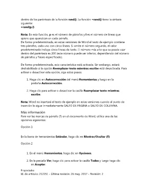 De forma predeterminada, en estas versiones de Word el texto de ejemplo contiene