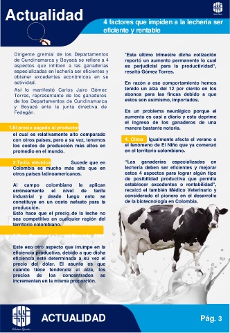 especializadas en lechería ser eficientes y resaltó Gómez Torres.