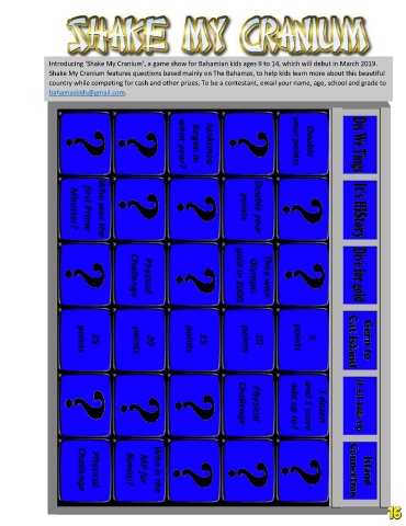 Shake My Cranium features questions based mainly on The Bahamas, to help kids learn more about this beautiful