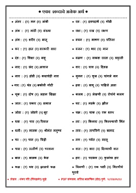 ● दंड : (१) शशक्षा (२) बाह ● वळण : (१) वाकडा रस्िा (२) प्रवृत्िी