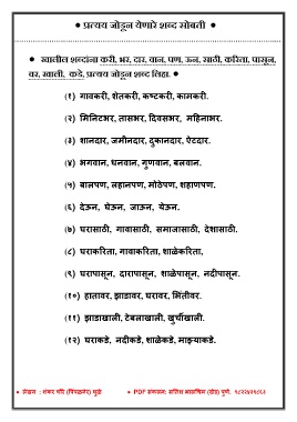 ● खालील शब्ाांना करी, भर, ्ार, र्वान, पण, ऊन, साठी, कररता, पासून,