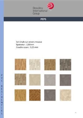 PEPS Sol vinyle sur envers mousse Epaisseur : 2,80mm Couche usure : 0,25 mm P V C R E S I D E N T I E L 10