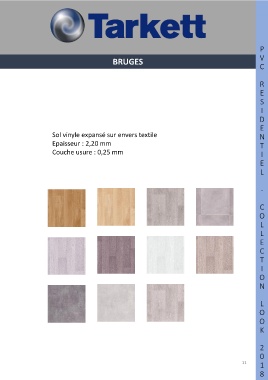 P V BRUGES C R E S I D E Sol vinyle expansé sur envers textile N Epaisseur : 2,20 mm T Couche usure : 0,25 mm I E L - C O L L E C T I O N L O O K 2 0 11 1 8