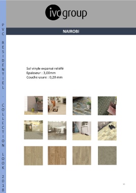 P V NAIROBI C R E S I D E N Sol vinyle expansé reliéfé T Epaisseur : 3,00mm I Couche usure : 0,20 mm E L - C O L L E C T I O N L O O K 2 0 1 12 8