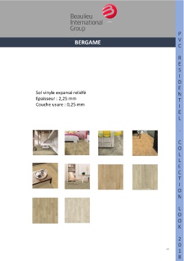 P V BERGAME C R E S I D E Sol vinyle expansé reliéfé N Epaisseur : 2,25 mm T Couche usure : 0,25 mm I E L - C O L L E C T I O N L O O K 2 0 13 1 8